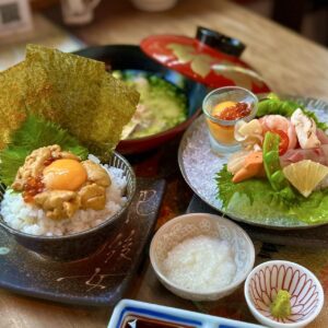 5月新ランチのご案内 天草生ウニ丼と天草天然刺身盛り合わせ